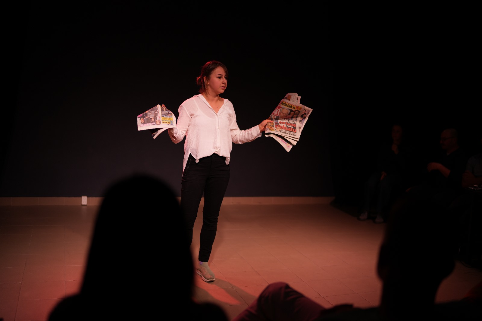 ‘Tabloids’ was developed during an intensive retreat in Bratislava, where partner theatres from Hungary, North Macedonia, Poland, Czechia, Slovakia, and Slovenia came together to create original formats designed to elevate improv theatre. Traditionally, improv has been associated with comedy gags and short-form games, often performed in casual settings like pubs and cafés. ‘Tabloids’ challenges this perception, proving that improvisational theatre deserves a place in professional theatre venues—where it can rival and even exceed scripted theatre in storytelling depth and artistic quality.
